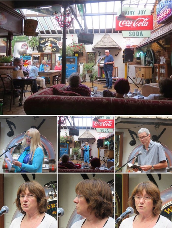 On 19 July, Poetry Café celebrated two years of monthly meetings at Smokey Joe’s, Cheltenham. Guest Poet was David J Costello from Wallasey and there was a strong open mic contingent, as usual. Here is a photo-record of the evening: