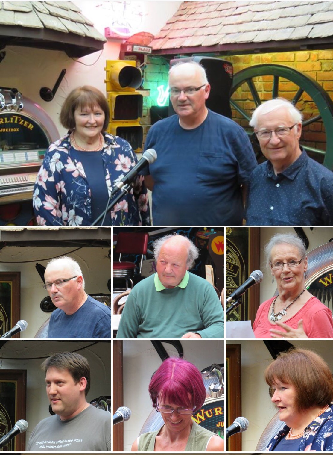 On 19 July, Poetry Café celebrated two years of monthly meetings at Smokey Joe’s, Cheltenham. Guest Poet was David J Costello from Wallasey and there was a strong open mic contingent, as usual. Here is a photo-record of the evening: