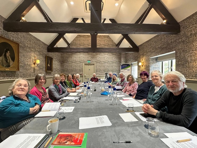The CPS Annual Awayday in April 2025 welcomed 17 poets for a whole day of workshops at Ellenborough Park, a five-star hotel in the pleasant village of Southam between the Cotswold Hills and Cheltenham Racecourse.  The topical themes were Flora and Fauna, and the poetry-theory themes included (1) a consideration of space, and ‘intentionality’ in terms of punctuation, and (2) the sonic structure of poems, eg how vowel sounds can be selected to achieve a desired effect and increase the impact of a line. I enjoyed preparing material for the ‘animal’ and ‘intentionality/punctuation’ themes, while Roger led on the ‘plant’ and ‘weight of words’ themes.  I was delighted that Cheltenham Arts Council – thanks to Elisa – featured my article about the CPS Awayday in their Perspectives magazine in June, including the following photographs of the poets attending: David Ashbee, Robin Gilbert, Sheila Spence, Tony Bradley, Nick Heap, Catherine Baker, Gill Wyatt, Penelope Howarth, Penny Lamport, Christine Griffin, Iris Anne Lewis, Judith van Dijkhuizen, Kirsty Bradbury, Annie Ellis, Emily Wills … and Roger Turner and me.  Huge thanks to Jess, Lucy and David at Ellenborough Park for helping us stage the event and to keep things running along smoothly on the day.