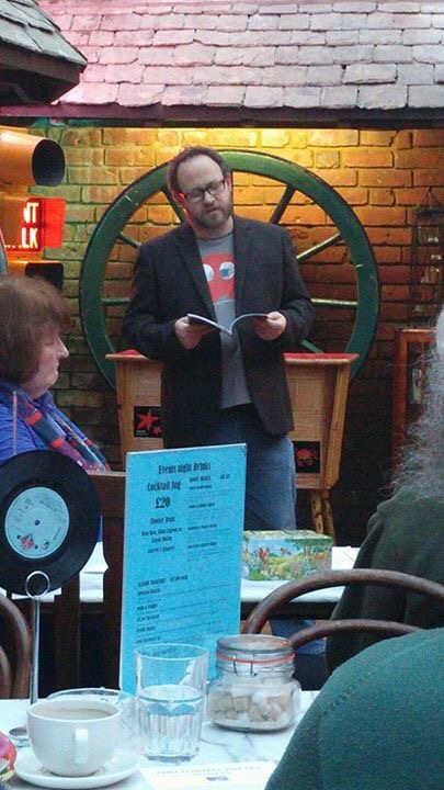 Thanks to The Poetry Cafe in London for hosting a reading with Indigo Dreams stablemates Brett Evans, Holly Magill and Marie Lightman, on an unforgettable evening in late September. Thanks to Ronnie and Dawn for their generous support towards the event. Thanks also to my son, David, for coming along on the night, and taking photos (and also for coming with me to The Poetry Library earlier in the day on my terribly egotistical quest to track down a copy of Interned at the Food Factory … which we did, at the end of a very long shelf of Philip Larkin’s poetry!)