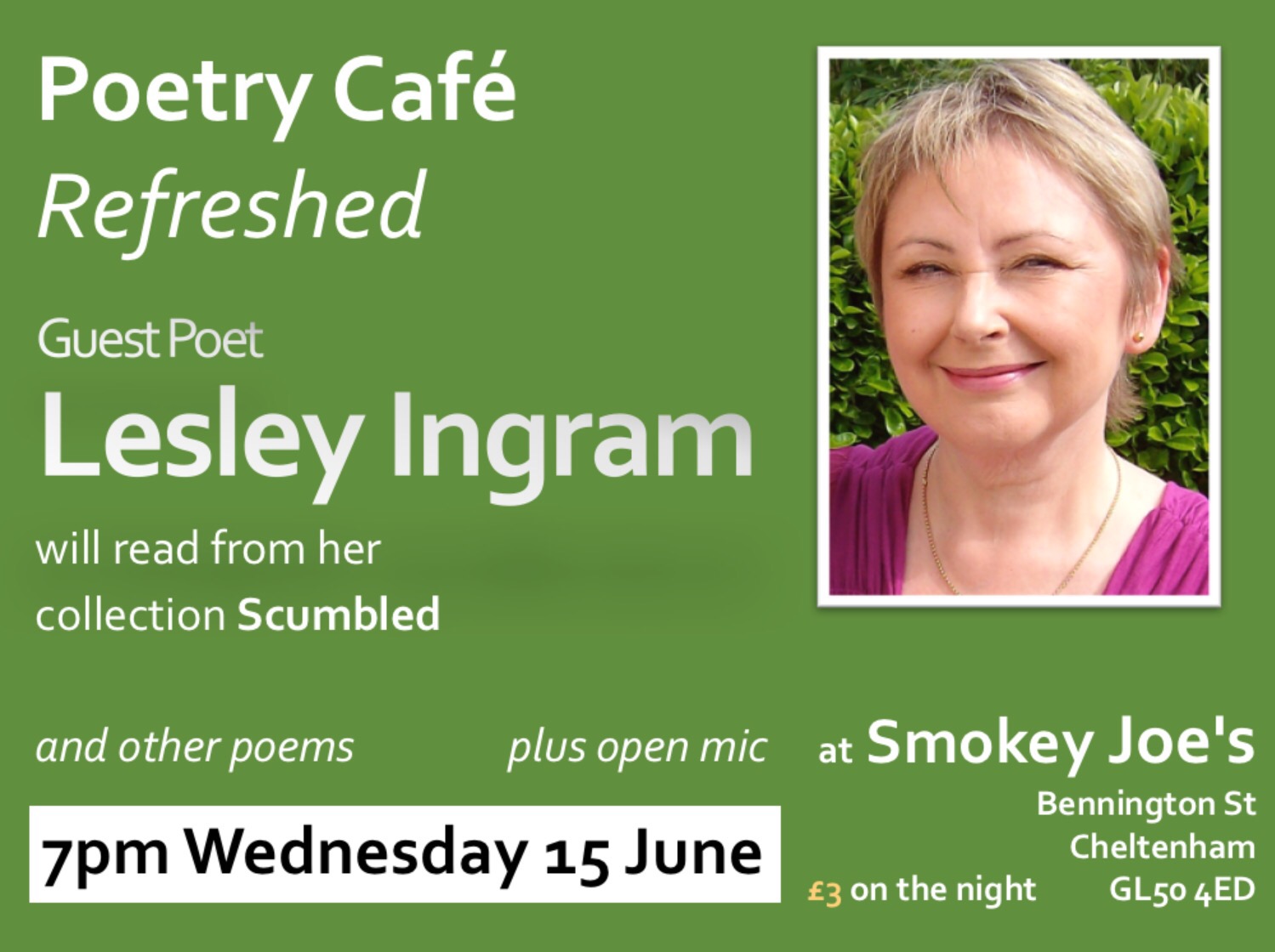 Lesley Ingram, guest poet, June 2016