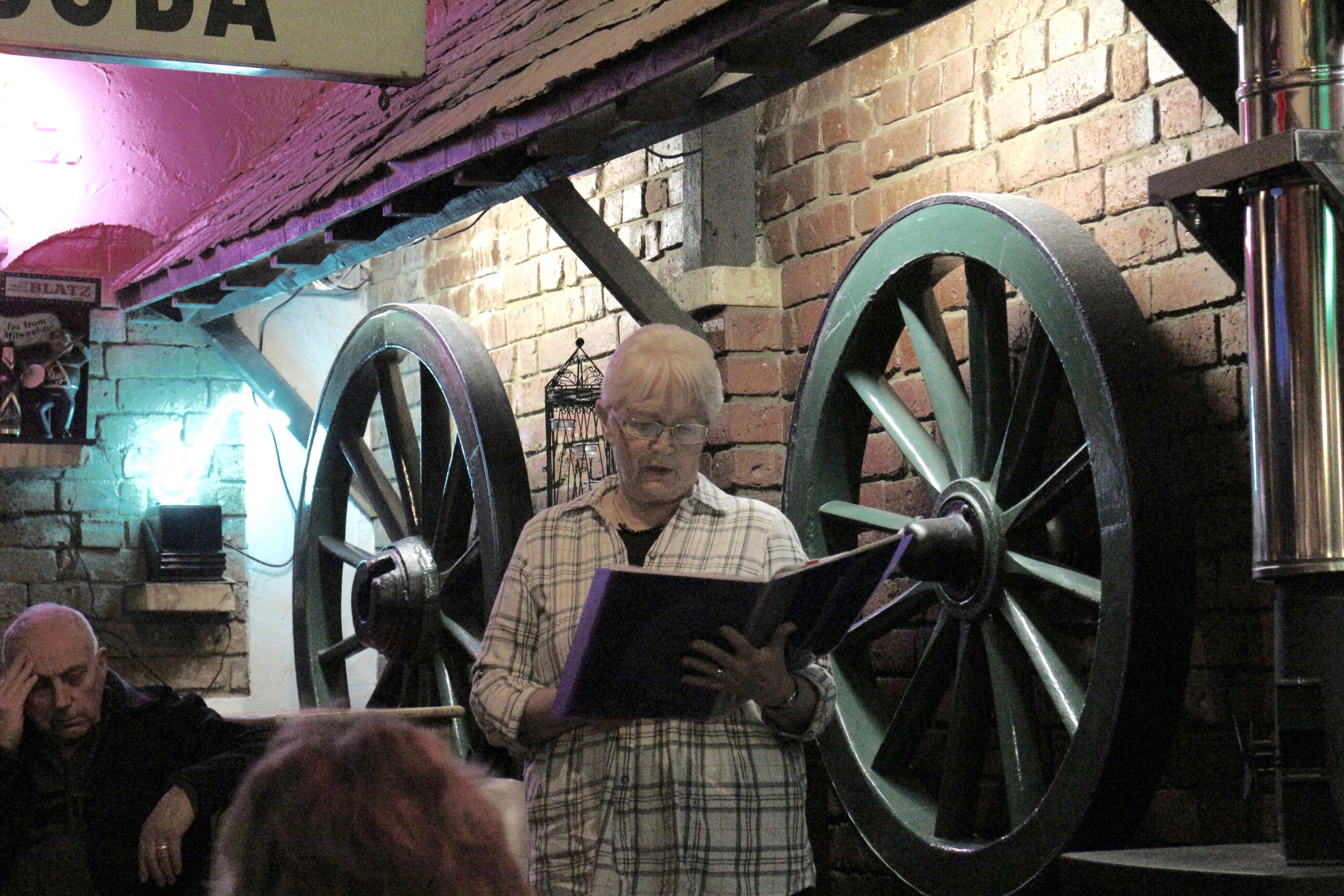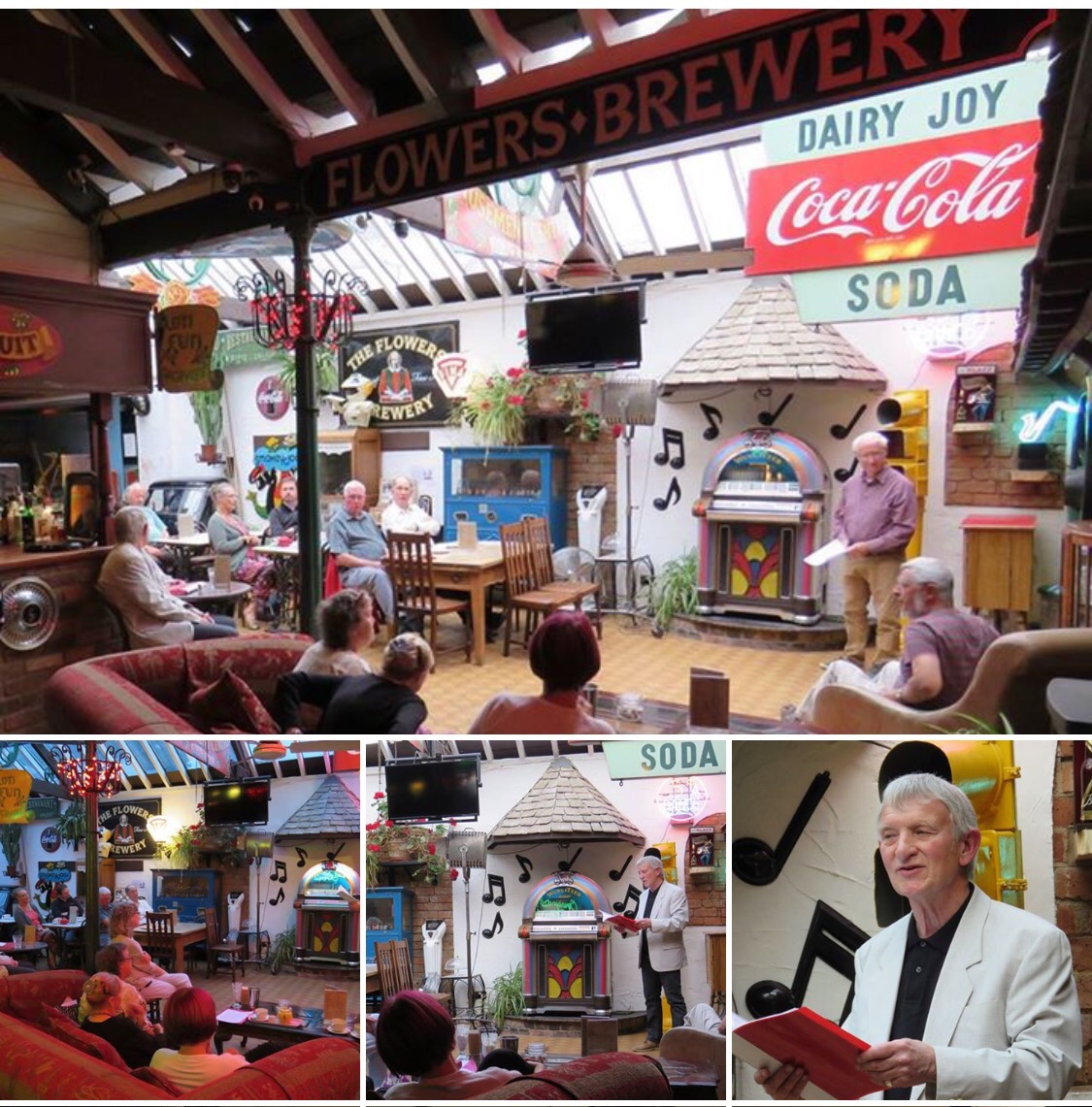 We’ve had many more poets join us at the open mic over the past year, including Kathy Gee, Sarah Bryson, Polly Stretton, Judi Marsh, Holly McGill, Anna Saunders, Howard Timms, Marilyn Timms, Kev Alway, Courtney Hulbert, Briony Smith, Chris Hemingway, Aled Thomas, Gill Garrett, Elizabeth Chanter, Michael Skaife d’Ingerthorpe, Samantha Pearse … and on one memorable occasion Dom Joly.