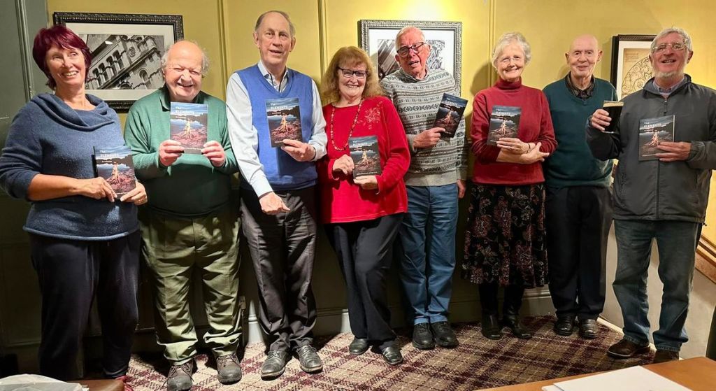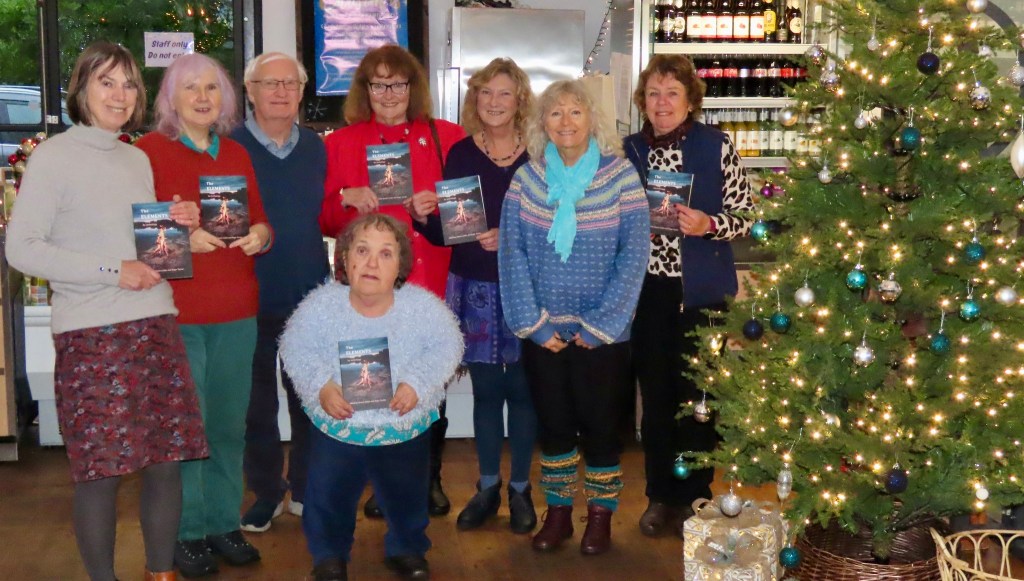 Over the summer, Roger and I co-selected and edited poems submitted by the Awayday poets, for inclusion in an anthology of poems and photographs on themes of earth, air, fire and water. ‘The Elements’ was published in November, as a joint Cheltenham Poetry Society and Gloucestershire Stanza venture, by my outfit, Eithon Bridge Publications. Thanks go to all of the poets attending the Awayday and submitting excellent poems for the anthology: Robin Gilbert, Iris Anne Lewis, Penny Howarth, Christine Griffin, Belinda Rimmer, Gill Garrett, Annie Ellis, Sheila Spence, Penny Lamport, Catherine Baker, Gill Wyatt, Alice Ross, David Ashbee, Michael Newman, Stuart Nunn, and of course Roger. Particular thanks go also to Kevin Woodward of Wheatley Printers Wheatley Printers in Stroud, Gloucestershire, who patiently worked with Roger and me through the process of setting the text, positioning photographs, finalising the cover design, and then the printing and finishing of the book. We were delighted with the resulting volume of 59 poems by 17 poets, and over 30 photographs. Thanks are also due to David Clarke and Rona Laycock who were generous in their words of endorsement for the cover, and additional words to help us publicise the book which can be purchased through Eithon Bridge Publications: Eithon Bridge The Elements. Below are some photos of the poets with their copies.