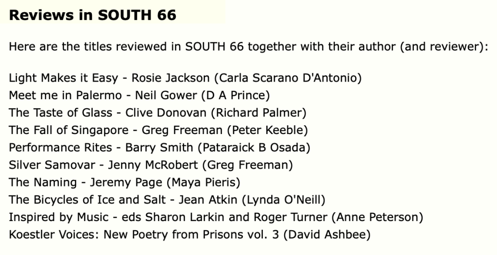 Finally, a big thank you to South Poetry Magazine South Magazine and especially Anne Peterson for the positive review of the ‘Inspired by Music’ anthology of poems and photographs edited by Roger Turner and me, and published on behalf of Cheltenham Poetry Society by Eithon Bridge Publications in November 2021. The review appeared in issue 66 of South Magazine in October 2022. The idea for an anthology inspired by music came from a desire for a project, for CPS poets, during the hiatus between the 2019 and 2022 Awayday writing retreats. The positive review for this anthology was most welcome! ‘Inspired by Music’ can be purchased through Eithon Bridge Publications: Eithon Bridge anthologies